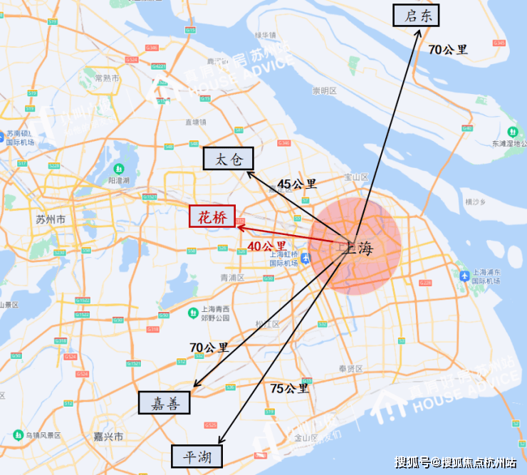与太仓、嘉善、启东和平湖等环沪城市相比,花桥距离上海市中心直线距离仅40公里左右。