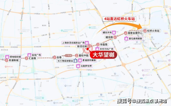 区位与配套方面,项目的交通便利性是核心亮点之一。其与17号线徐泾北城站直线距离仅约80-160米,目前虽受河流阻隔需绕行,步行约1.5公里,但项目东北侧已规划建设专用人行桥,未来将直通地铁站二楼,届时可实现“正地铁房”的便捷接驳,大幅提升通勤效率。借助17号线,