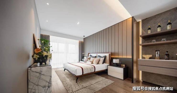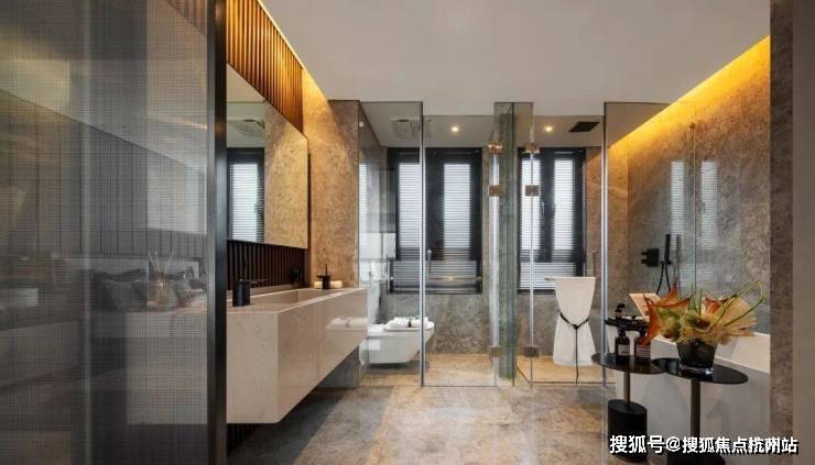 豪华主卧套房,奢阔尺寸满足更多生活理想。步入式衣帽间、三分离式双盆台带浴缸独卫,给予二人世界更多的尊崇质感。