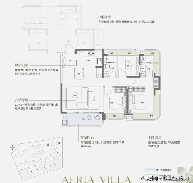 主卧更别出心裁地设计了两大270°转角飘窗,在同面积段产品中实属罕见,瞬间将睡眠区的景观层次与奢华感拉升到新的高度。
