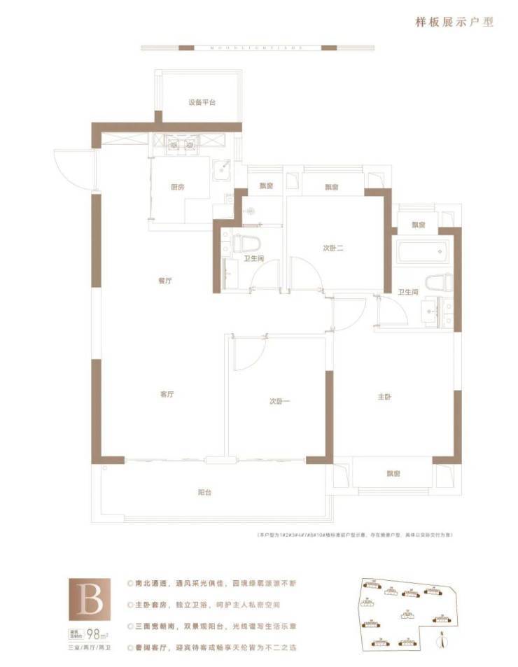 另外,项目户型多为 三开间朝南,98㎡和118㎡还整体采用了 南向双阳台设计,房间通透明亮,利用率高。再加上 阳台L型窗设计、同层排水设计……每一处细节都经过了认真考量,带来幸福满满的居家生活。