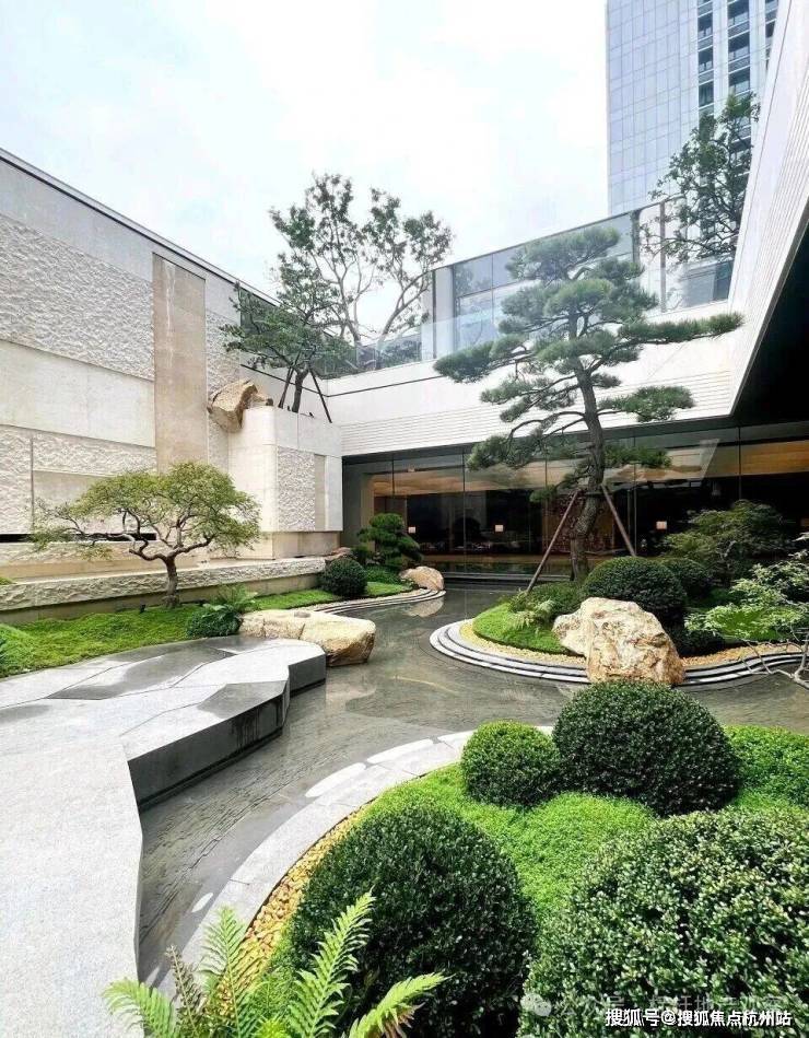 会所庭院以建筑为框,引泉植松,奢造约7米高溪山流瀑,特选6棵造型黑松。将二维的《溪山行旅图》转译为一幅“幽深与静谧、壮丽与宁静”的立体山水画卷。