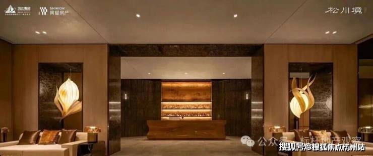 大门徐徐开启,步入序厅,眼前豁然展现《松阁观潮图》所蕴含的“动静相依”东方美学意境。定制套石的龙粼照壁在波光粼粼中熠熠生辉,构筑起松川境独有的文化印记与精神象征。松之静谧与潮之壮阔在此完美融合,每一步都隔绝了门外的喧嚣,实现了从纷繁世界到宁静家园的优雅过渡。