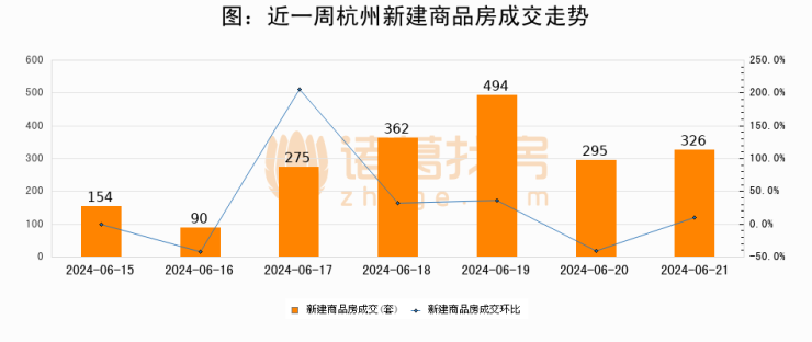 【杭州成交日报】06月21日新房成交326套、二手房289套;涨价房源77套