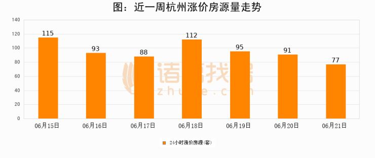 根据诸葛找房数据显示,杭州24小时涨价房源量为77套,较06月20日减少14套,环比下降15.4%。与此同时,涨价房源占比小幅回落,对于购房者来说是一个入市窗口期,购房者可抓住时机入市。