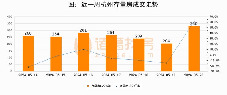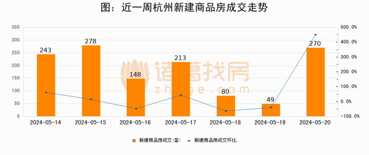 【杭州成交日报】05月20日新房成交270套、二手房330套;涨价房源131套
