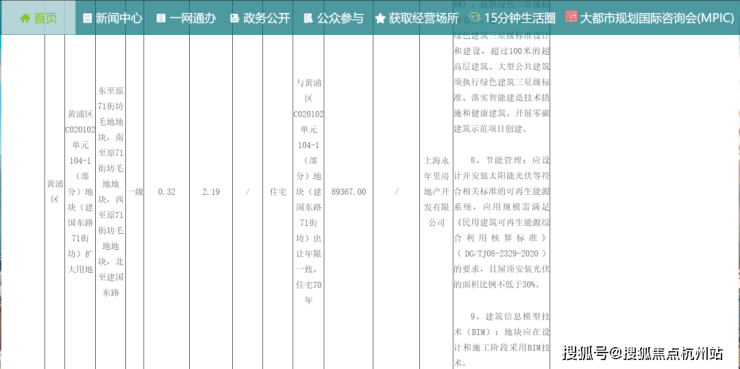 据上海市规划和自然资源局官网显示,上海永年里房地产开发有限公司以总价89367万,拿下黄浦区C020102单元104-1(部分)地块(建国东路71街坊)扩大用地。根据公示,地块为住宅用地,协议扩大用地面积0.32公顷,扩大后总面积2.19公顷。