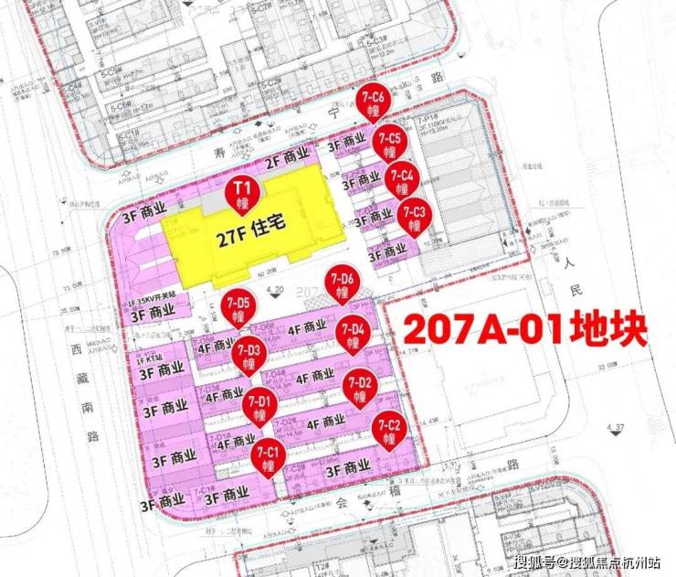 中区207A-01地块为Rr3类住宅、商业混合用地,拟建1幢100米27层超高层住宅、17栋2-4F商业;