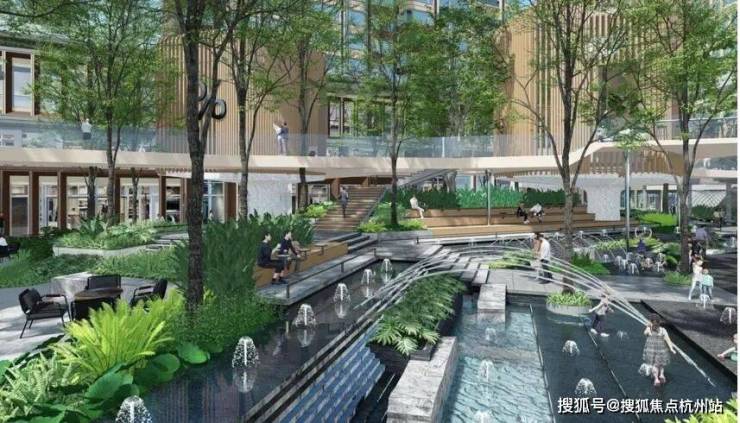 值得一提,商业景观有三大主场景,分别为森感公园、九曲花街、花园大道。其中森感公园里约40%都是超过十米的大树,绿意盎然。