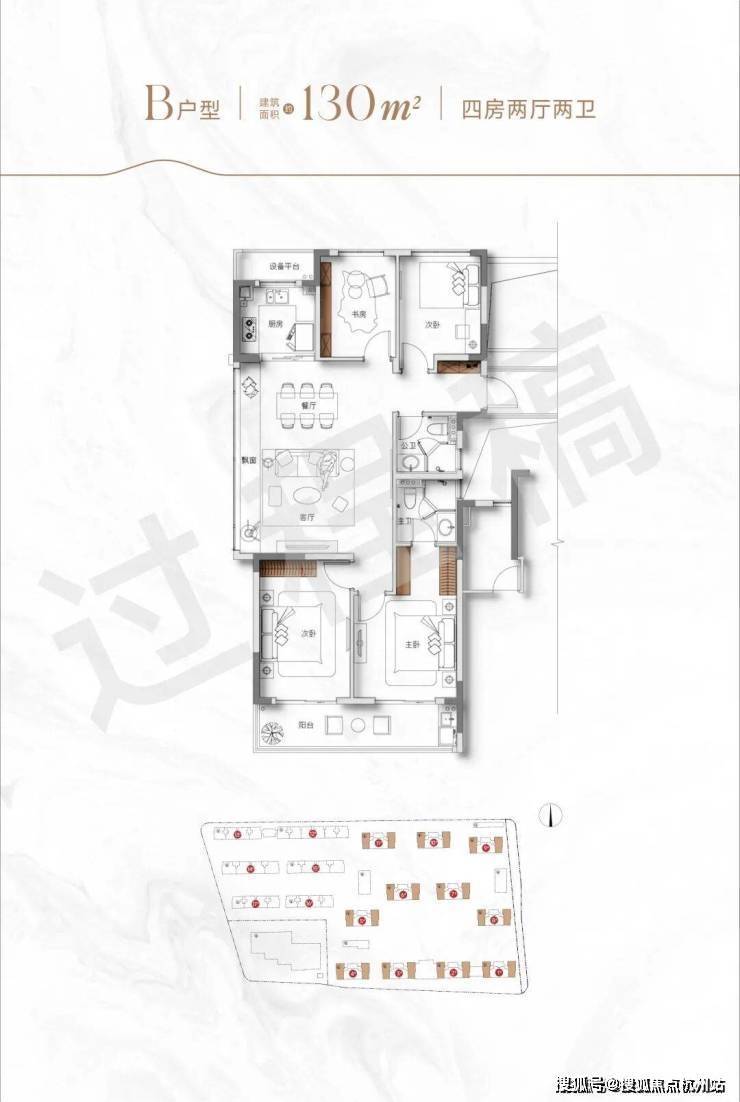 如果你想要舒适度进阶,也可以考虑边套 建面约130方四房两厅两卫户型。