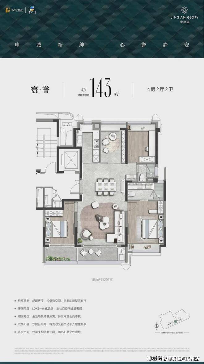 誉静安建面约143㎡户型,是2000万级买到内环内4房的仅有机会,一步到位终极改善,还在各个层面实现居住品质的跃迁,这样的房子买起来能不舒心吗?