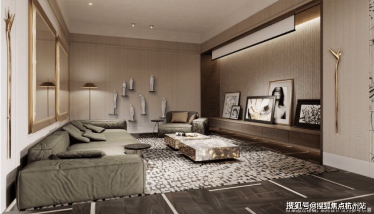 约117㎡地下层:会客休憩之余,别墅还有专属家族兴趣空间。极致挑高并附带夹层,采光天井引光入室,通透场域可打造私人藏品陈展区、雪茄吧、茶室、家庭影院或瑜伽健身房等,营造更多立体化的生活场景。