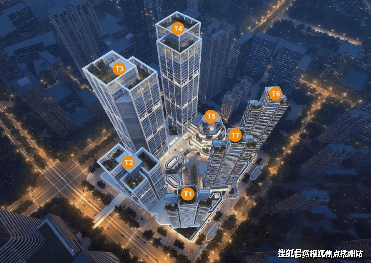 地标建筑:200 米摩天建筑群,是钱江世纪城最高双子塔,18 米挑高大堂为杭州写字楼最高大堂,2.4 米幕墙玻璃宽为杭州第一,全景落地玻璃可 270° 俯瞰钱塘江与奥体 “莲花碗”。