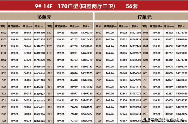 附一房一价表: