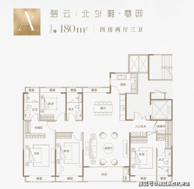 建面约235㎡4房2厅3卫:约7米超大横厅,三卧室朝南,LDKB一体格局,约60平社交会客厅,全屋飘窗通透采光、大尺度景观阳台,超30平至尊套房主卧、双南套房、全明三卫设计、高规格精装标准。