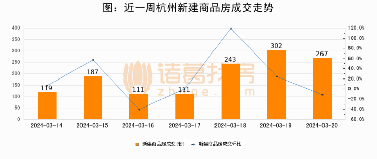 【杭州成交日报】03月20日新房成交267套、二手房286套;涨价房源140套