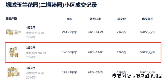 6.二手市场价格可期,旁边绿城二期今年成交一套 90m²小户型,单价9.1万,比保利天奕前期小户型最贵单价还贵出近1万/m²!