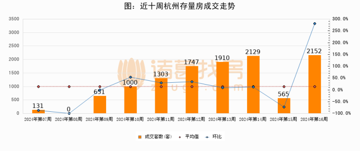 【杭州成交周报】第15周新房成交1110套,二手房2152套,涨价房源597套