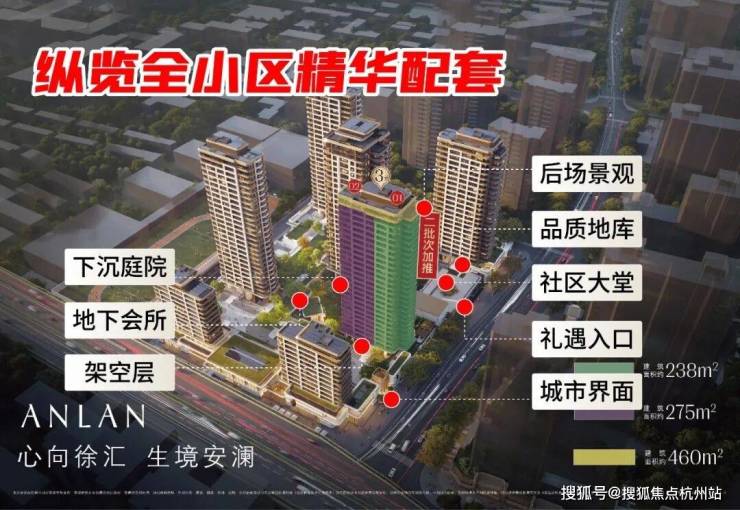 社区核心景观“浮岛绿洲”正对其视野,会所、下沉庭院、星空戏水池等核心配套紧邻布局,与楼王共享景观与配套。