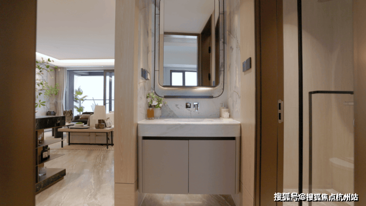 电视背景墙采用岩板交付,纹理自然,质感高级,彰显出主人独特的品味与格调。每一处装饰细节都经过精心考量,力求为业主打造一个既美观又实用的居住空间。还有建面约107㎡3房实景样板房同步公开,实现小面积里的“大满足”。整体面宽约9.8米,南北通透,所有卧室以及厨房都有飘窗设计,各个功能区域划分合理,动静分区明确,既保证了居住的舒适性,又满足了家庭成员不同的生活需求。
