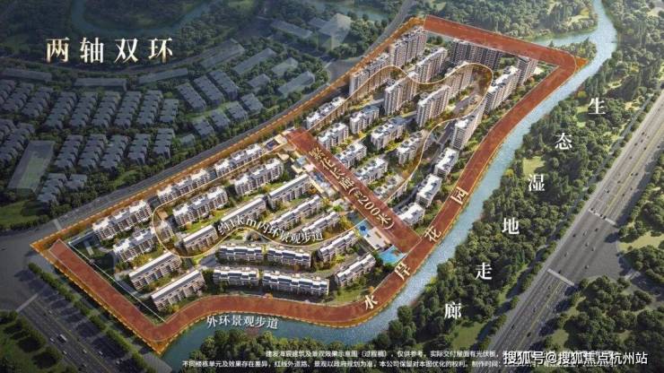 而且项目整个地块三面都被绿地与河道包裹,尤其是项目东侧,公共绿地、滨河景观带、城市生态走廊此地排列,天然具备构建多层次景观视域的条件。
