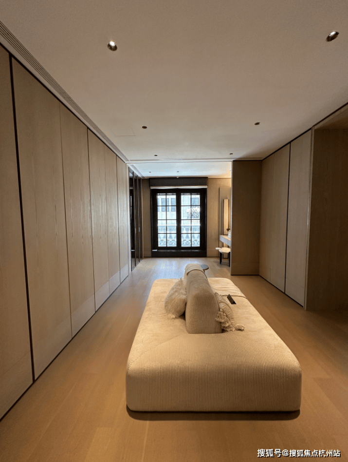 三楼整层为主卧套房, 样板间设计了双开门入卧室,进入起居空间,样板间选择在这里放一些艺术装饰、设计吧台来彰显主人品味。