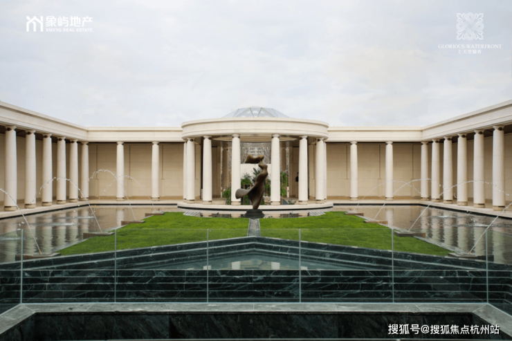 旅程从一道约 36 米长的社区入口大门开始。这并非简单的门扉,而是一条复刻凡尔赛宫花园三泉林的仪式轴。空间节奏遵循“放-收-放”的古典韵律,入口水景对称铺陈,人的视线与步伐被自然引导,心绪也随之沉静。它摒弃了浮夸的视觉冲击,转而追求一种步入艺术殿堂前的庄重与期待。