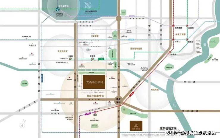 在桥上可以看到莘庄商务区的天际线,世宏金源中心、旭辉莘庄中心、西子国际、中铁华东总部、中铁诺德、AFC大虹桥国际等楼宇。