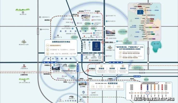 距众禾嘉苑仅一站的丰茂路站,即为一主二辅枢纽体系中的嘉定东枢纽,是嘉闵线、宝嘉线的换乘站,可为新城提供直达苏锡常的大容量、高可靠公共交通服务,是嘉定新城最具潜力的核心引擎。