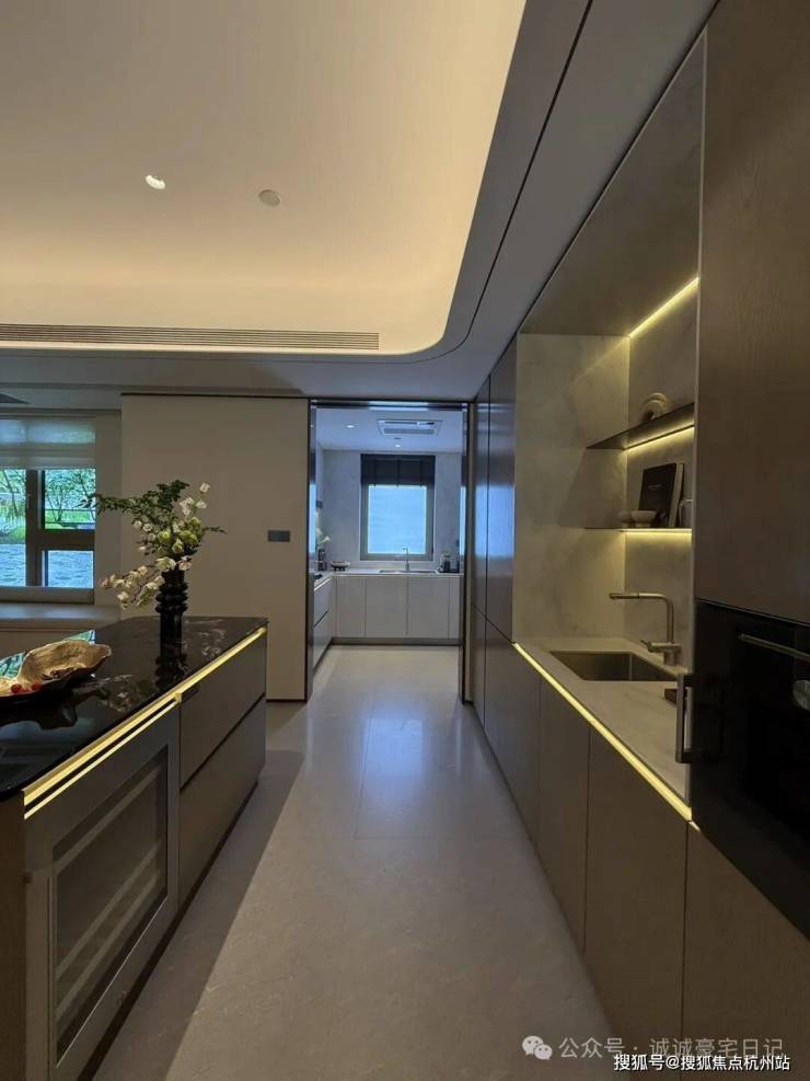 厨卫方面,西厨定制高柜,容纳嘉格纳蒸烤一体机、嘉格纳双开门冰箱、洗手台以及各类收纳空间;中厨自带嘉格纳灶具、油烟机和洗碗机。主卫配置劳芬台盆、浴缸和独立卫浴洁具空间、独立淋浴空间配备当代的花洒,顶部有松下暖风机,还配置了电热毛巾架。