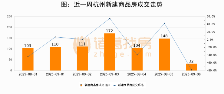 【杭州成交日报】09月06日新房成交32套、二手房141套;涨价房源43套