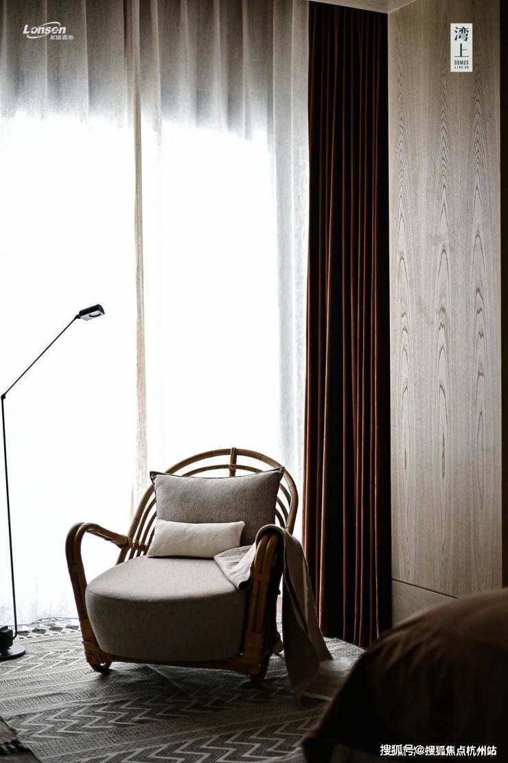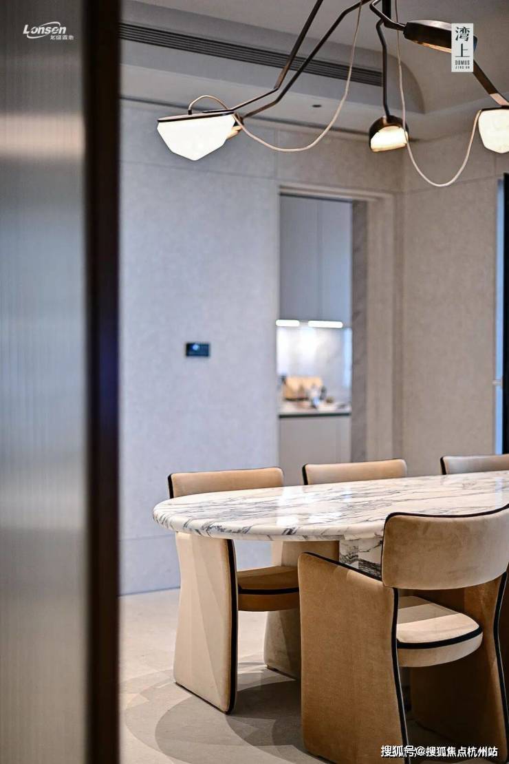 空间层高突破传统住宅达到约3.3米,搭配墙面、地面选用的米白色天然石材,以及顶部特殊的圆弧造型,通透的空间里蕴含着饱满的力量。