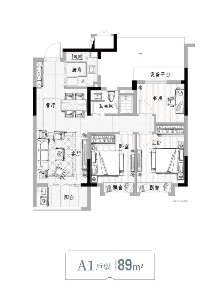 星合映89方户型(建面约),三开间朝南,南向面宽约9.5米,IMAX采光面保证了每个空间的舒适性。特别是书房,罕有约3.2米的面宽,改造成儿童房也绰绰有余。