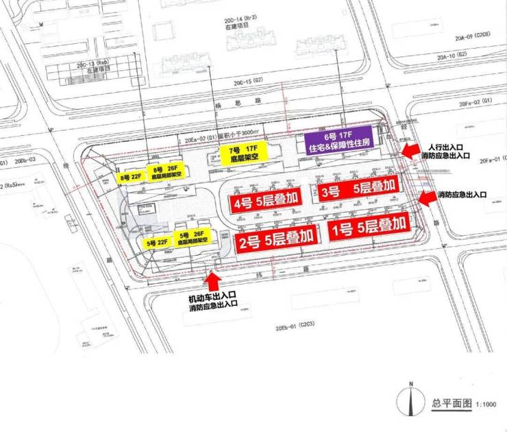 从规划方案来看,「翡雲悦府」二期楼栋的分布总体呈南低北高,东低西高的格局。东南侧分布4栋叠墅,西侧排布2栋22-26层的大高层,北侧排布2栋17层的高层,地块内保障房位于东北角。