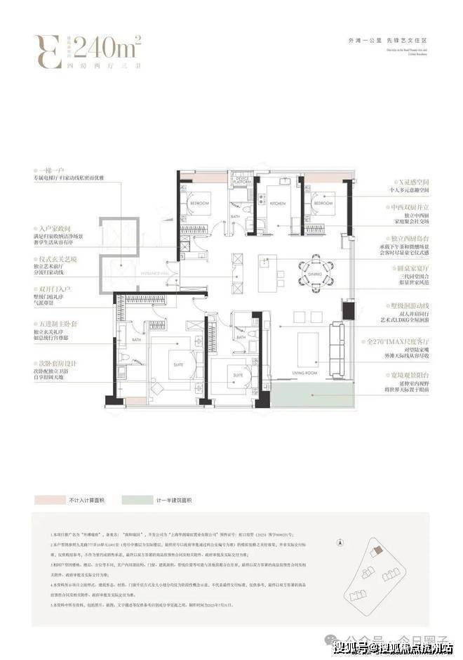上海华润外滩瑞府营销中心电话400-9659-259(官方预约看房热线)功能 MVP:作为上海内环 “大平层”产品中面积段最小的四房格局,约165㎡户型选择做三卧室朝南,这样让父母和孩子都能享受阳光和尺度!其中两间南向次卧以非承重墙为界,可随心打通为约6m开间的艺术天地,后期随着家庭新成员的加入,可以再重新北向房间相对独立静谧,恰到好处的距离感里藏着尊重。面对三口之家还是三代同堂的需求,这个户型都可以做到无需置换!