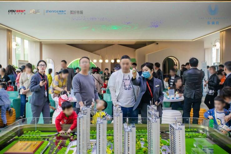 在开放活动还未正式开始前,示范区门口早已宾客云集、人头攒动,现场看房者络绎不绝,还有许多客户带着孩子在示范区内拍照打卡。