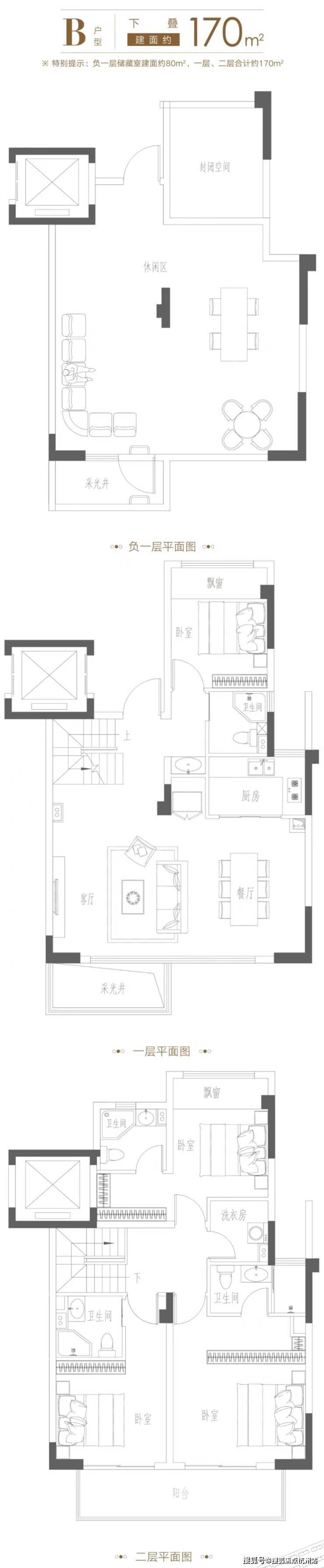 叠墅 :建面约 155–188㎡ ,下叠赠 80㎡地下室 ,上叠配 17㎡南向露台 ,独立入户,私密性强。