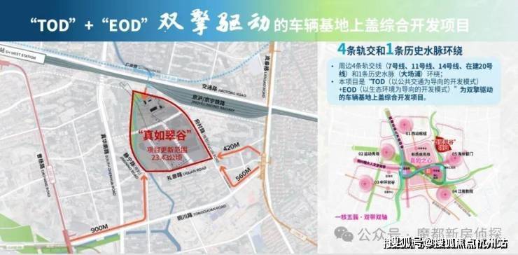 项目地处真如副中心东部,更新范围约23.43公顷。项目以“TOD(以公共交通为导向的开发模式)+EOD(以生态环境为导向的开发模式)”为双擎驱动的车辆基地上盖综合开发项目,紧邻东侧轨交7号线岚皋路站和北侧轨交20号线广泉路站(在建)。