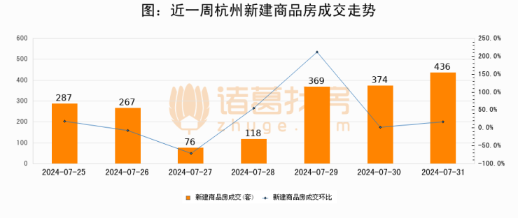 【杭州成交日报】07月31日新房成交436套、二手房229套;涨价房源47套