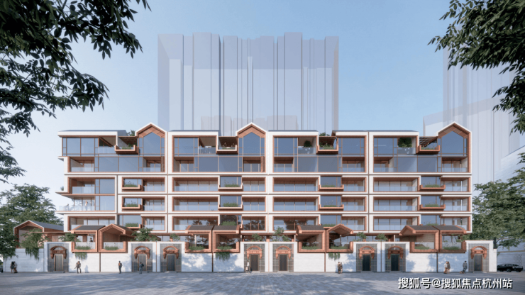 合院地上三层,面积段约210-500㎡,计合院82套。
