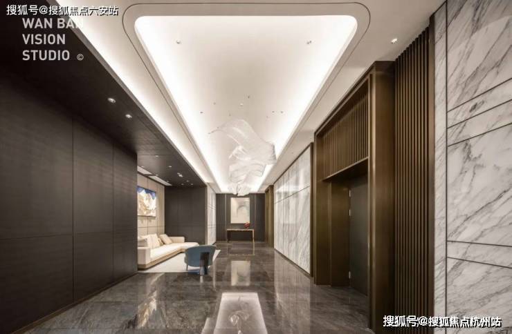每栋楼入口种植罗汉松,彰显尊贵气质;公区背景墙采用巴西进口天宝石石材,与观云钱塘城同款,尽显奢华质感。从整体规划来看,项目总占地14628㎡,建筑面积72096㎡,容积率约4.9,规划为145户纯大平层社区,保证了居住的纯粹性与舒适性。
