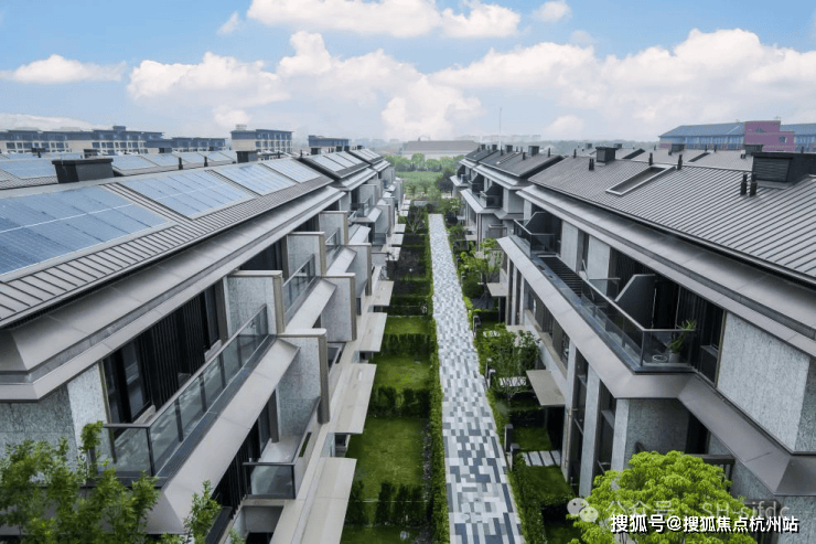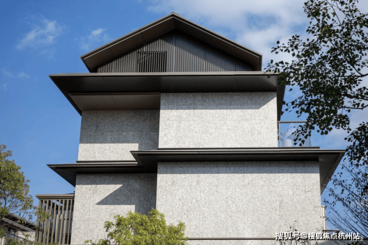 新亚洲国际建筑风尚,搭配独特的坡屋顶,灰色陶瓦结合金属挑檐设计,约35°倾斜稳定结构防积水,楼体形态和谐、黄金比例赋予建筑独一无二的美。