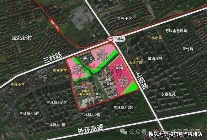 该地块为三林镇金光村“城中村”改造的重点项目,紧邻地铁11号线三林站,规划一条12米宽公共步行通道,连接社区与地铁站;同时周边有中房金谊广场、三林中学、东方医院等生活配套。