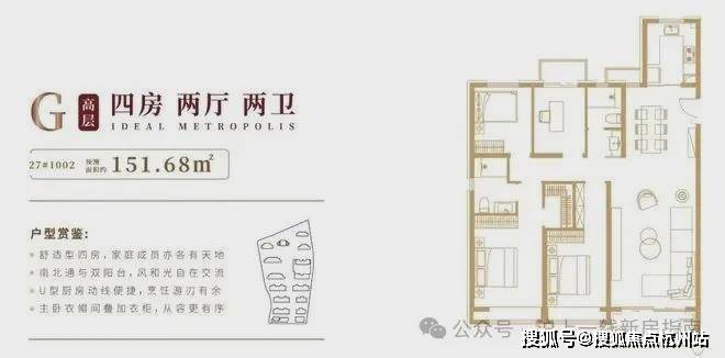 :三开间朝南,6.8 米双联阳台,U 型厨房设计,主卧套房带独立卫浴,总价约 780 万起