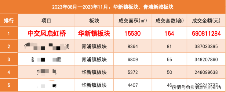 作为热销10亿+的项目,继首开之后,中交凤启虹桥再次荣登8-11月华新、青浦镇板块在售新盘中, 成交套数、成交面积、成交金额三大榜首!且远超第二名成交2倍之多!名副其实的实力选手!