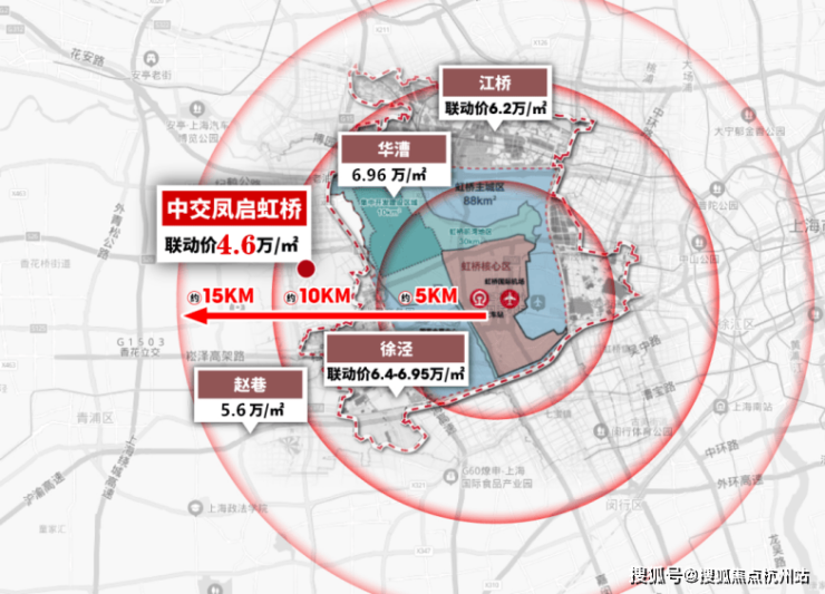 目前,与中交·凤启虹桥仅一站之隔的芳乐路站TOD旁的一块宅地, 联动价已提升至6.96万/㎡,徐泾单价同样是直逼7万/㎡,没有600万以上预算,根本拿不下!
