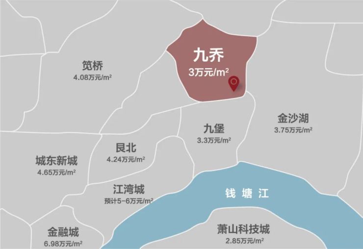 从城东新城精装限价46500元/㎡、艮北新城精装限价42400元/㎡,下沙金沙湖房价37500元/㎡,就连一路之隔的九堡也有3000元/㎡的价差。对比之下,高层精装限价仍然保持在3万/㎡,处于相对更低的九乔其价格优势则更加明显。