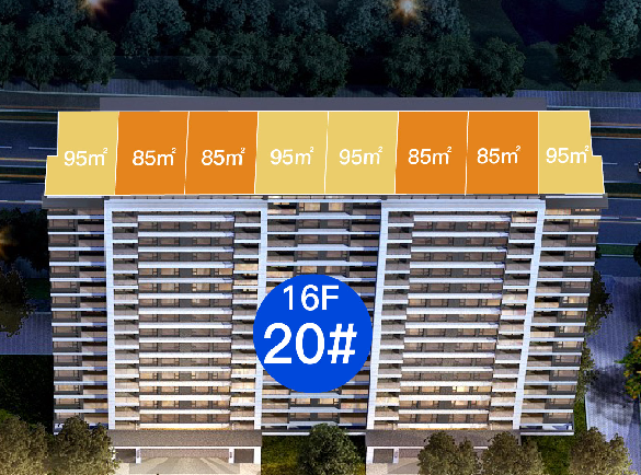 这也意味着景观资源、配套设施、观景视野体验,20#楼都几乎独享。且这幢楼离乔司南地铁站的步行距离较其他楼幢更近一些。还有,20#楼全部是建面约85方中间套和95方边套户型。