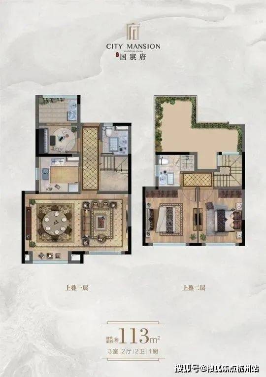 上叠建面约113平(三房两厅两卫)