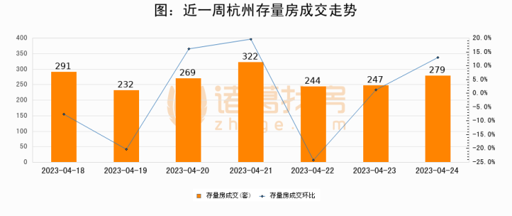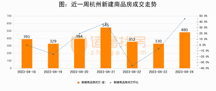 【杭州成交日报】04月24日新房成交480套、二手房279套;涨价房源89套